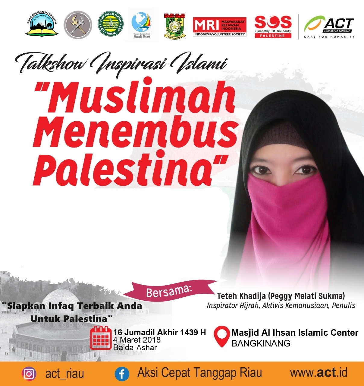 "Alhamdulillah, muslimah penuh inspirasi ini inshaallah akan hadir ditengah-tengah kita Untuk mengajak dan membangkitkan semangat kita semua agar peduli pada saudara muslim di Palestina," ucapnya