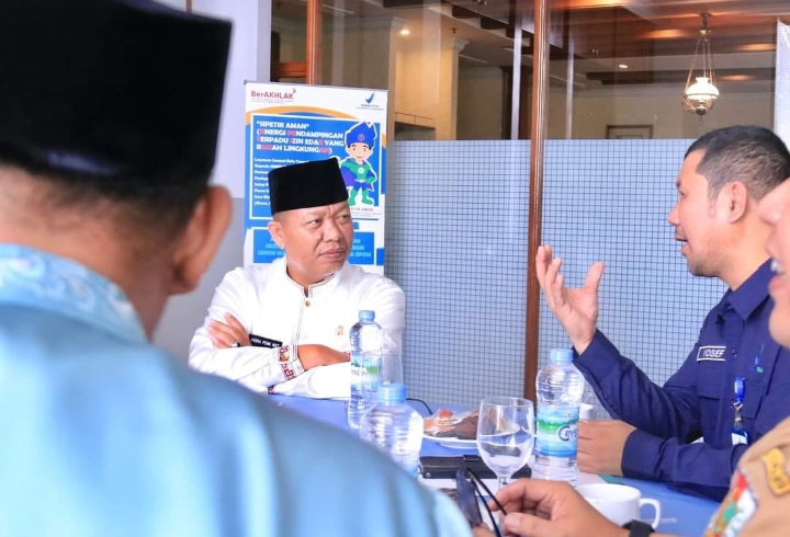 Penyalainews, Pekanbaru - Sekretaris Daerah Kota (Sekdako) Pekanbaru Indra Pomi Nasution bersama kepala Dinas terkait audiensi dengan Kepala Balai Besar Pengawas Obat dan Makanan (BBPOM) Yosep Dwi Irwan di ruang rapat Hotel Aryaduta, Senin (19/6). Kedua belah pihak membahas percepatan perizinan Usaha Mikro Kecil dan Menengah (UMKM).