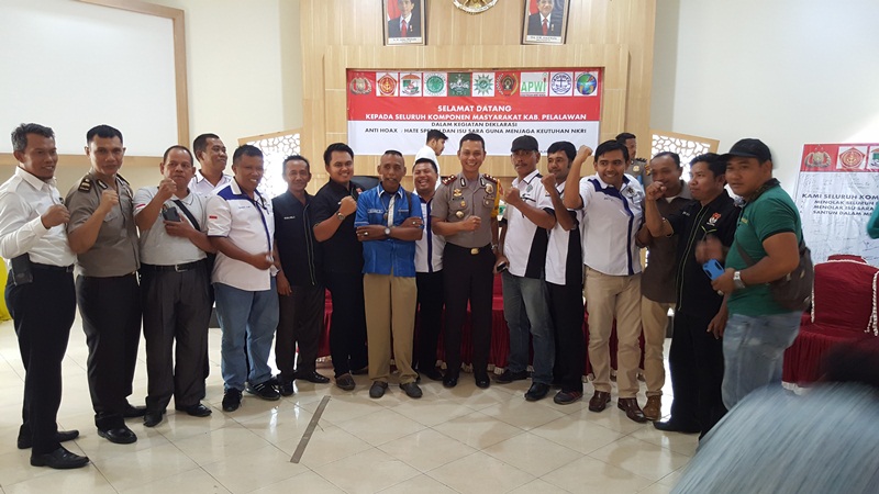 Kapolres Pelalawan AKBP. Kaswandi Irwan,SIK dalam sambutan pembuka acara deklarasi menyampaikan bahwa maraknya informasi dan berita yang beredar di media sosial yang cenderung mengganggu situasi keamanan dan ketertiban masyarakat (kamtibmas) dibutuhkan sikap dan komitmen bersama dari seluruh lapisan masyarakat untuk menangkis seluruh informasi hoax, ujaran kebencian dan sara yang akan memecah belah NKRI