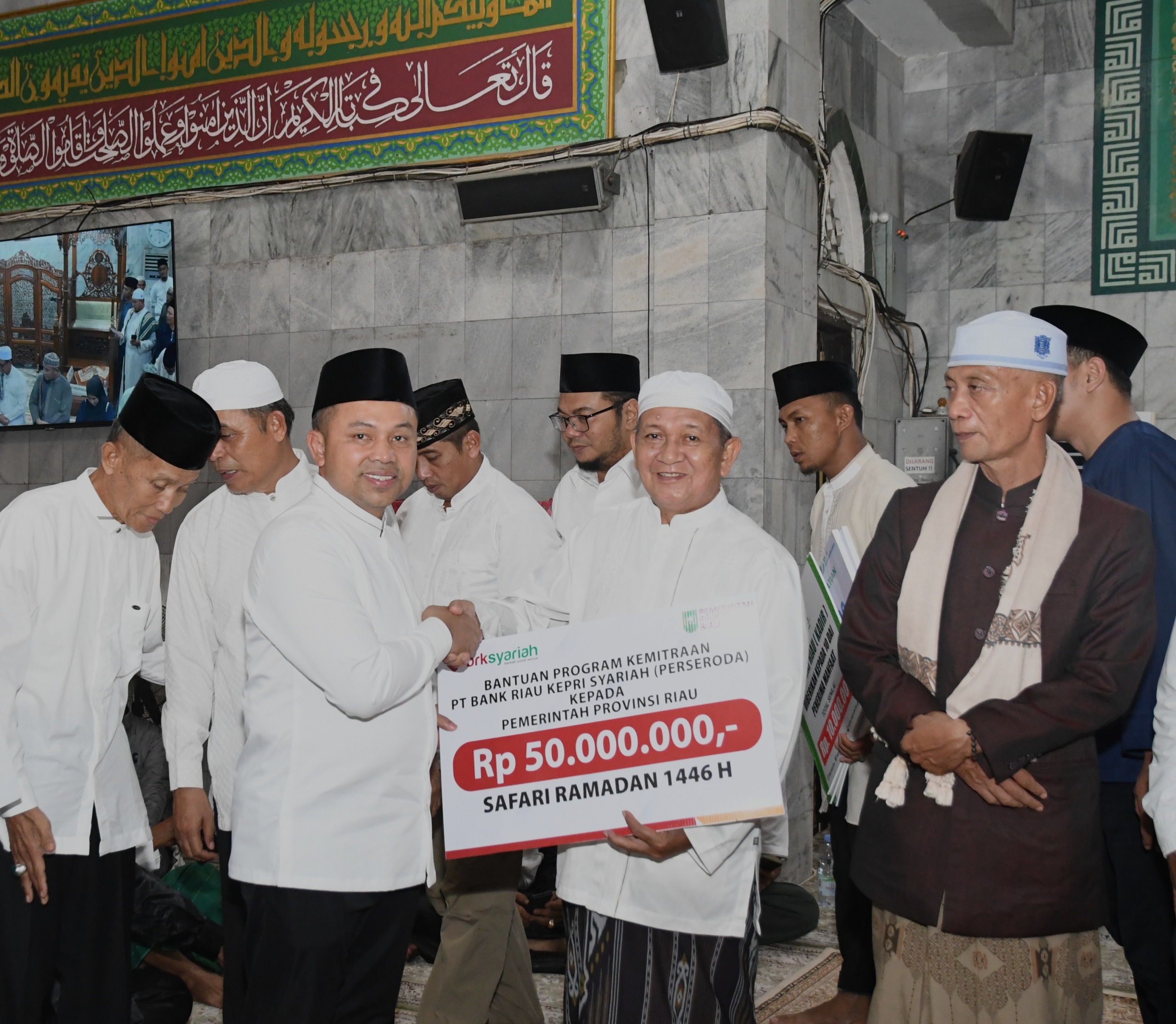 Beritaharian.co.id, TEMBILAHAN - Setelah melaksanakan safari ramadan di Desa Sungai Simbar Kecamatan Kateman Kabupaten Indragiri Hilir (Inhil), bersama Gubernur Riau (Gubri) Abdul Wahid. Manajemen Bank Riau Kepri (BRK) Syariah kembali menyalurkan bantuan CSR bertempat di Masjid Al Huda Tembilahan, Sabtu (15/3/2025) malam.