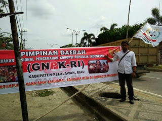 Dewan Pimpinan Daerah Gerakan Nasional Pencegahan Korupsi - Republik Indonesia (DPD GNPK-RI) Kab. Pelalawan melihat peristiwa yang terjadi dirohingya, tergerak untuk membantu dengan melakukan penggalangan dana yang nantinya akan diserahkan kewarga Rohingya melalui lembaga resmi.