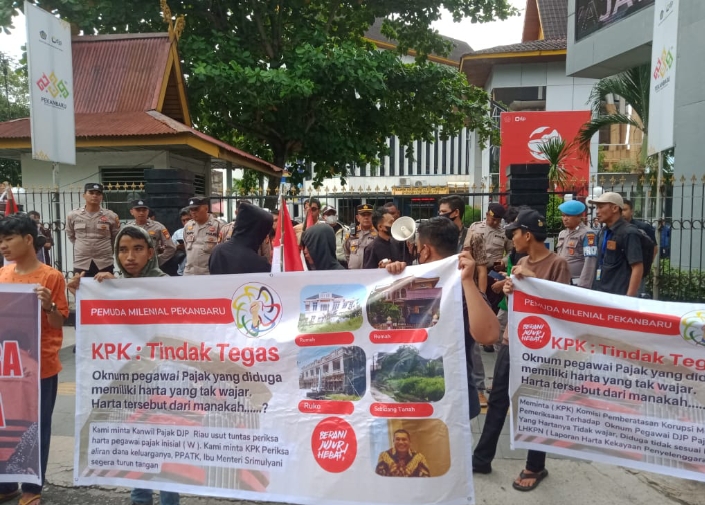 Penyalainews, Pekanbaru - Pemuda Millenial Pekanbaru (PMP) harus kembali melakukan unjuk rasa dan menyampaikan sikap di Kantor DJP Riau. Hal ini dikarenakan tidak kunjungan DJP Riau merespon dan menindak oknum W yang diduga telah melakukan korupsi uang pajak rakyat.
