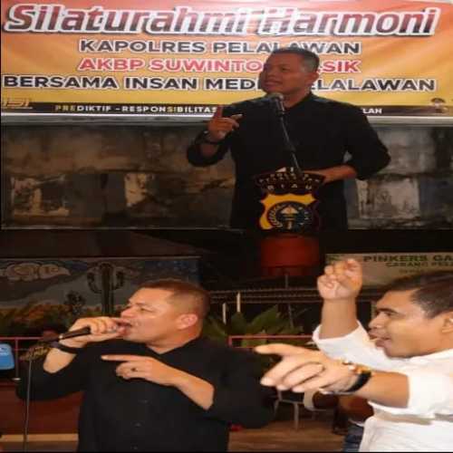 Rasa kebersamaan serta keakraban antara Polri dan awak Media, mulai terlihat saat Kapolres Pelalawan AKBP Suwinto SH SIK membawakan sebuah lagu bernada Rege sambil bernyanyi dan berjoged diikuti oleh seluruh personil Polres Pelalawan dan awak media Kabupaten Pelalawan berbaur dalam rasa kebersamaan dan kegembiraan hingga acara silaturahmi berakhir.