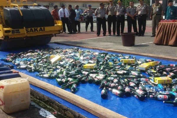 Sedikitnya, 712 botol kaleng miras berbagai merek, 12 jeregen miras tradisional jenis tuak, 29 slop rokok, makanan kadaluarsa 51 kaleng/bungkus, 178 kotak mercon, dimusnahkan dengan cara dilindas dengan alat berat.