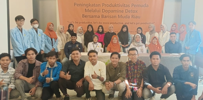 Penyalainews, Pekanbaru - Universitas Riau bersama Barisan Muda Riau (BMR) menggelar pelatihan dalam meningkatkan Produktivitas Pemuda melalui Program Dopamine Detox (PDTox) di Hotel Whiz Prime Hotel Pekanbaru.