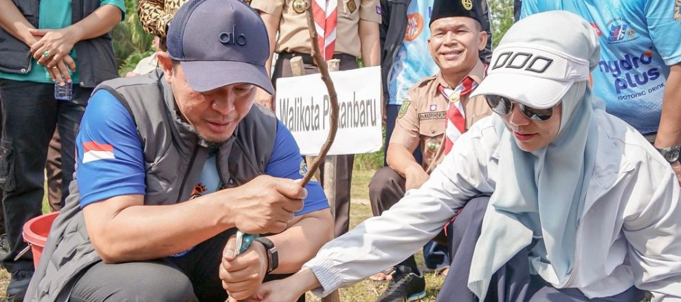 Penyalainews, Pekanbaru - Walikota Pekanbaru H Agung Nugroho SE MM bersama Wakil Walikota (Wawako) H Markarius Anwar ST M.Arch, mengikuti penanaman 1.000 pohon di kawasan Sport Center, Jalan Palembang, Kecamatan Kulim, Minggu (18/1/2026).