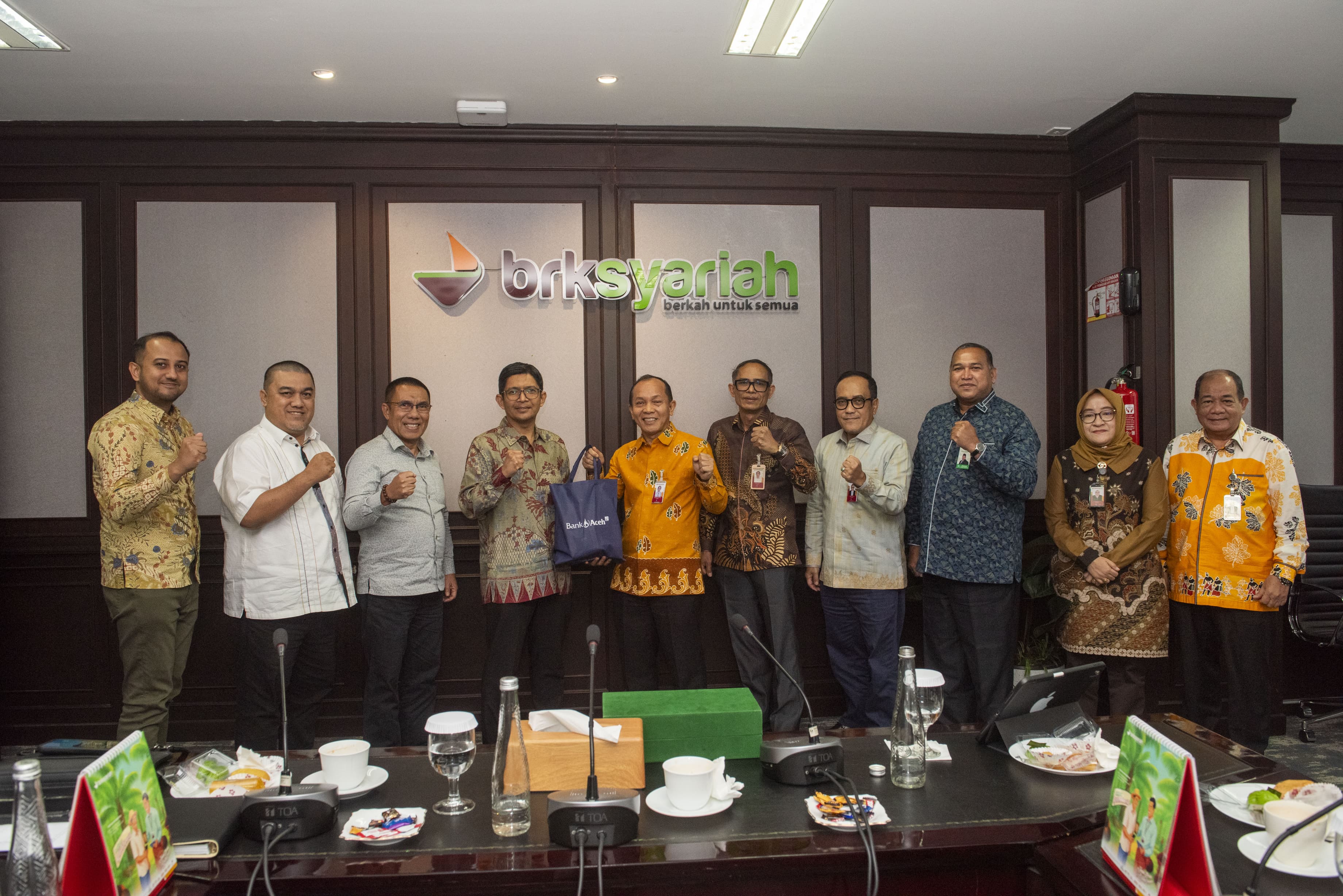 Rombongan Bank Aceh yang dipimpin Komisaris Independen sekaligus Ketua Komite Remunerasi dan Nominasi, M. Gaussyah, disambut Komisaris Independen BRK Syariah, Roy Prakoso. Turut mendampingi, Pemimpin Divisi Manajemen Sumber Daya Insani (MSDI) BRK Syariah, M. Affan, serta Pemimpin Divisi Hukum, Arhim Syafei.