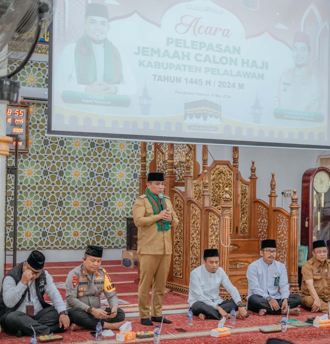 Bupati Pelalawan H. Zukri SE yang di dampingi Istri Sella Pitaloka S. Ap dalam sambutannya mengatakan bahwa Jemaah Calon Haji (JCH) Harus Ikhlas dalam menjalankan ibadah, niatkan dalam hati hanya beribadah kepada allah, hilangkan ingatan duniawi terhadap keluarga yang di tinggal kan di Indonesia.