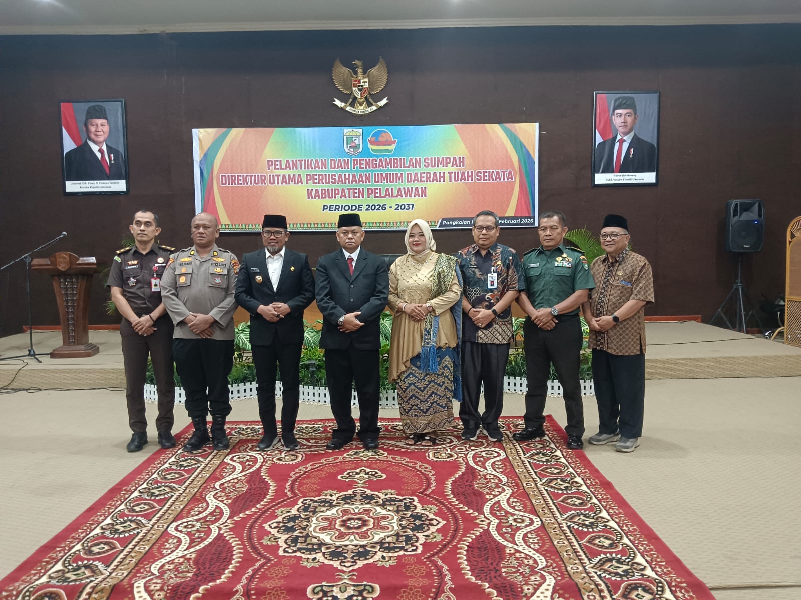 Acara diawali dengan menyanyikan lagu Indonesia Raya, dilanjutkan pembacaan Keputusan Bupati Pelalawan Nomor: KPTS.500/EK-SDA/2026/213 tentang Pengangkatan Direktur Utama Perumda Tuah Sekata yang ditetapkan pada 23 Februari 2026.
