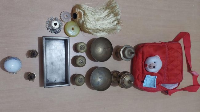 Berdasarkan pemeriksaan, petugas menemukan sejumlah benda bersejarah di dalam tas berwarna merah yang dibawa pelaku.