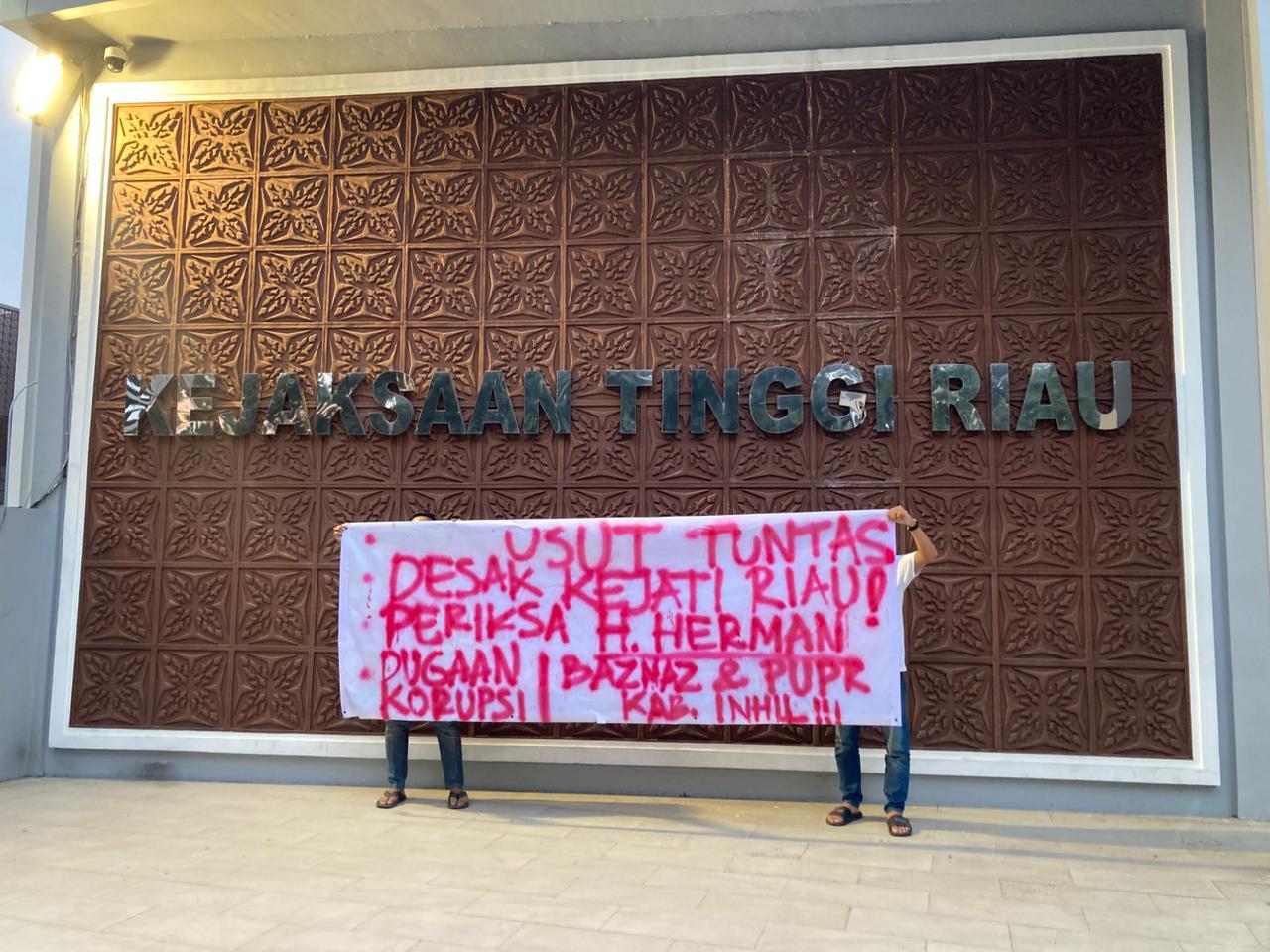 Selain itu, mahasiswa juga menuntut Kejati Riau untuk segera memeriksa proyek-proyek di Dinas PUPR Inhil yang diduga di monopoli, serta meminta H. Herman mundur dari jabatannya apabila terbukti melakukan tindak pidana korupsi.