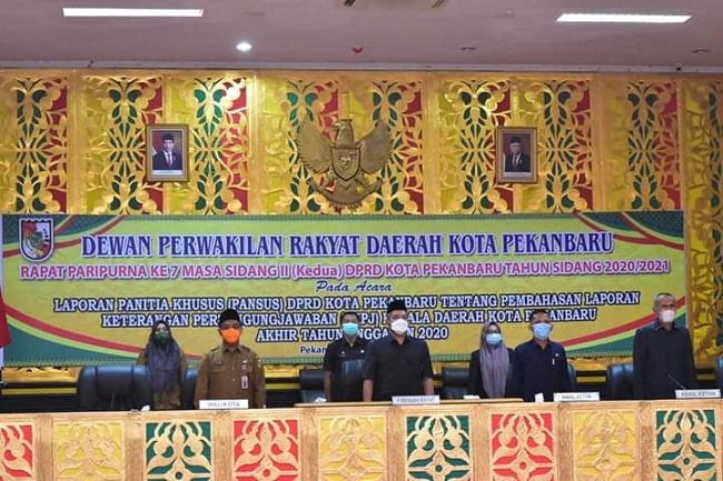 Penyalainews, Pekanbaru - DPRD Kota Pekanbaru, Senin (26/4/2021), menggelar Rapat Paripurna dengan Agenda Penyampaian Laporan Panitia Khusus (Pansus) DPRD Kota Pekanbaru tentang Pembahasan Laporan Keterangan Pertanggungjawaban (LKPJ) Kepala Daerah Kota Pekanbaru Akhir Tahun Anggaran 2020.