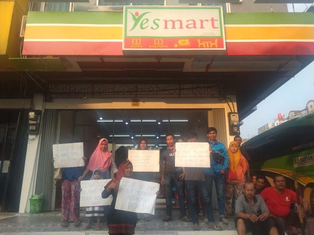 Penyalainews, Pekanbaru - Pedagang tradisional Pasar Basah SKA mengeluhkan keberadaan mini market Yes Mart yang berada tak jauh dari tempat mereka berusaha. Selain belum mengantongi izin, Yes Mart juga diduga menjual barang yang harganya jauh di bawah harga pasar.