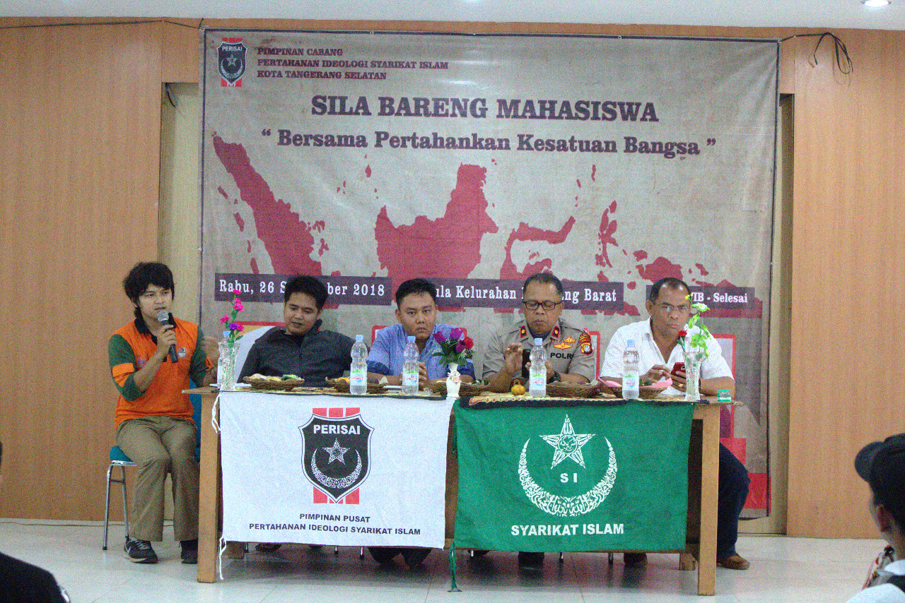 PENYALAINEWS.COM, TANGERANG SELATAN - Diskusi yang bertajuk Sila Bareng Mahasiswa diselenggarakan oleh Pimpinan Cabang Pertahanan Idelogi Syarikat Islam (PC. Perisai Tangsel) mengangkat tema "Bersama Pertahankan Kesatuan Bangsa" dilakukan menganggapi maraknya isu radikalisme dan penyebaran hoax dikalangan pemuda dan mahasiswa.