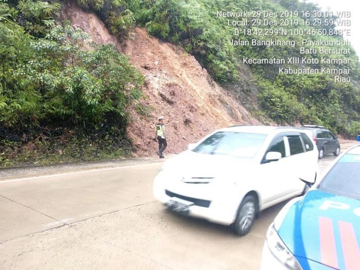 Untuk mengantisipasi keadaan dan mengurangi resiko korban apabila terjadi longsor di Jalan Lintas Riau - Sumbar khususnya di kawasan Rantau Berangin hingga Perbatasan Sumatera Barat, Satuan Lalulintas Polres Kampar dengan Tim Urai Macetnya mengintensifkan kegiatan patroli dan pengaturan arus lalulintas di kawasan tersebut.