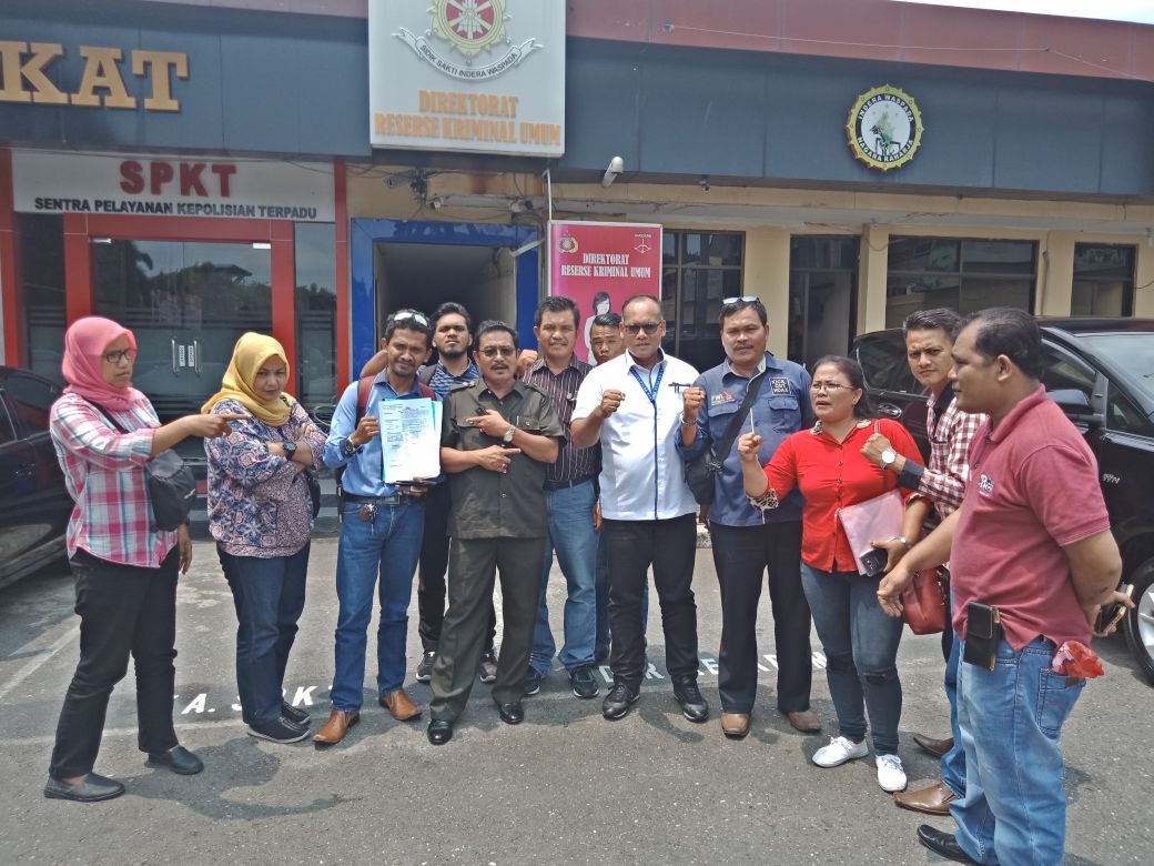 Asep Ruhiat bersama rekannya Wirya Nata Atmadja, resmi dilaporkan Solidaritas Pers Indonesia yang diwakili oleh Ismail Sarlata ke Polda Riau.
